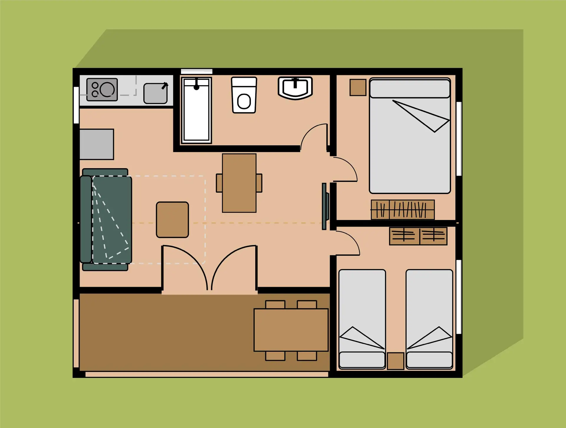Los Bungalows de 36 m² del Camping Baztan son la opción perfecta para familias o pequeños grupos que desean disfrutar de la naturaleza del Valle del Baztan con la comodidad de un alojamiento totalmente equipado.